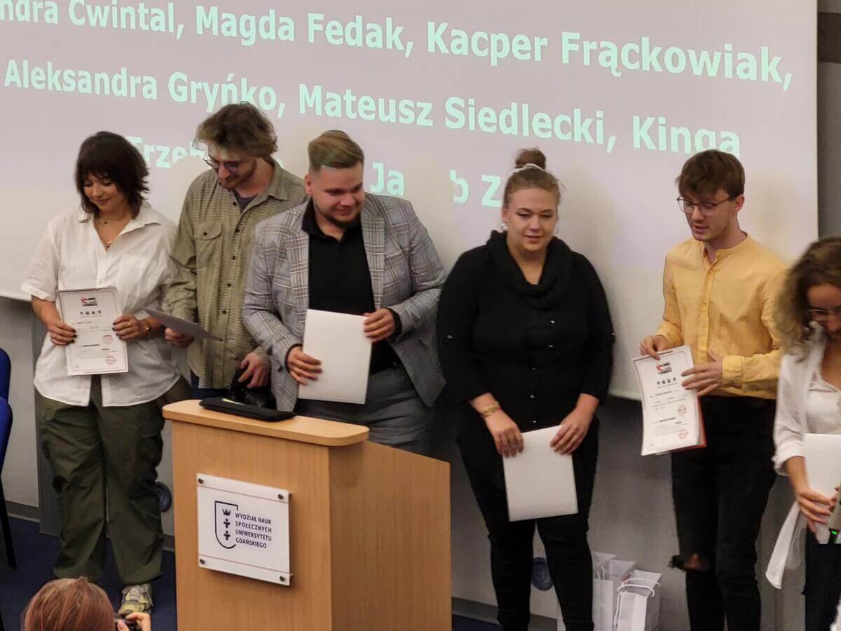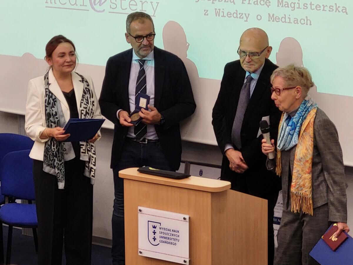 Po uroczystym rozpoczęciu nagrodzono zasłużonych pracowników Uniwersytetu Gdańskiego. Pamiątkowe medale Rektora uczelni trafiły w ręce prof. Jolanty Maćkiewicz, redaktora Marka Ponikowskiego i Pani redaktor Aliny Kietrys (zdalny udział w obradach). Laureaci przedstawili się publiczności, a następnie podziękowali za wyróżnienie. Wieloletni wykładowcy i pracownicy skupieni wokół mediów otrzymali laudacje pochwalne, które wygłosili dr Dominik Chomik, dr Konrad Knoch i dr Beata Czechowska-Derkacz.