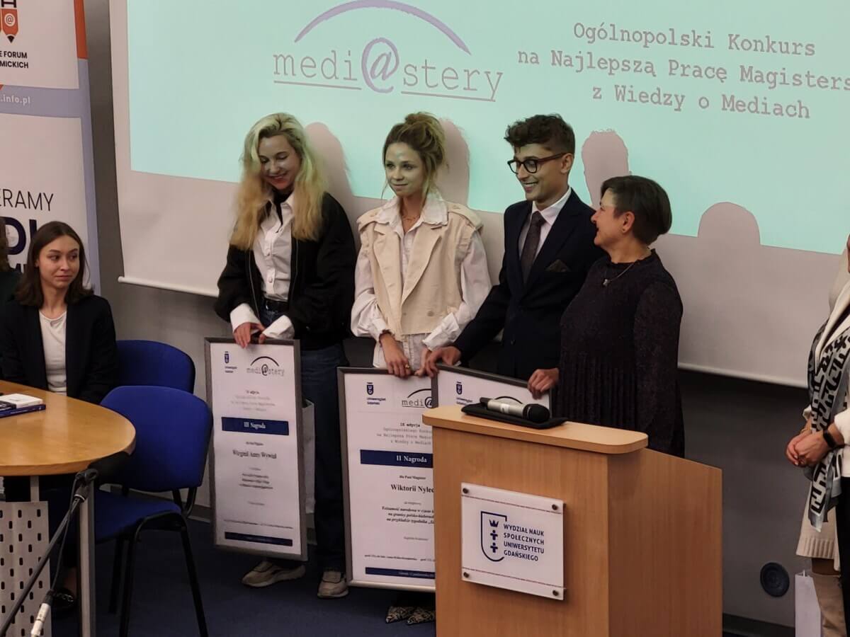 Medi@stery to ogólnopolski konkurs na najlepszą pracę magisterską z nauk o komunikacji społecznej i mediach. Laureatami IX edycji konkursu zostali kolejno: Wirginia Anna Wywiał, studentka Uniwersytetu Jagiellońskiego, która uplasowała się na najniższym stopniu podium za swoją pracę „Nowi ateiści kontra teiści. Ramowanie religii i Boga w debatach światopoglądowych„. Drugie miejsce zajęła Wiktoria Nylec, studentka Uniwersytetu Warszawskiego napisała pracę pt. „Tożsamość narodowa w czasie kryzysu na granicy polsko-białoruskiej na przykładzie tygodnika Sieci„. Zwycięzcą konkursu został Wojciech Kułaga, także student Uniwersytetu Jagiellońskiego i autor pracy magisterskiej „Od demotywatorów do wideo-memów na TikToku. Ewolucja memów internetowych„. Oprócz tego krótką rozmowę z wygranym i jego promotorką dr. hab. Małgorzatą Lisowską-Magdziarz przeprowadził absolwent licencjackich studiów dziennikarskich na Uniwersytecie Gdańskim, Stanisław Pawłowski.