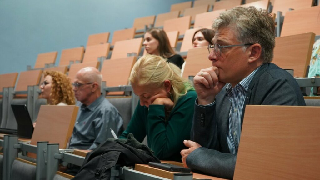 W czwartek (16.10), pierwszego dnia konferencji Media.Biznes.Kultura, na Wydziale Nauk Społecznych odbył się pokaz filmu dokumentalnego „The Grave” (Mogiła) w reżyserii Allie’go Wharfa. Po projekcji publiczność wysłuchała rozmowy, którą dr Dominika Rafalska przeprowadziła z Oleksiim Yeroshenko, autorem zdjęć do filmu. Widzowie mieli również okazję zadać własne pytania i podzielić się refleksjami po seansie.